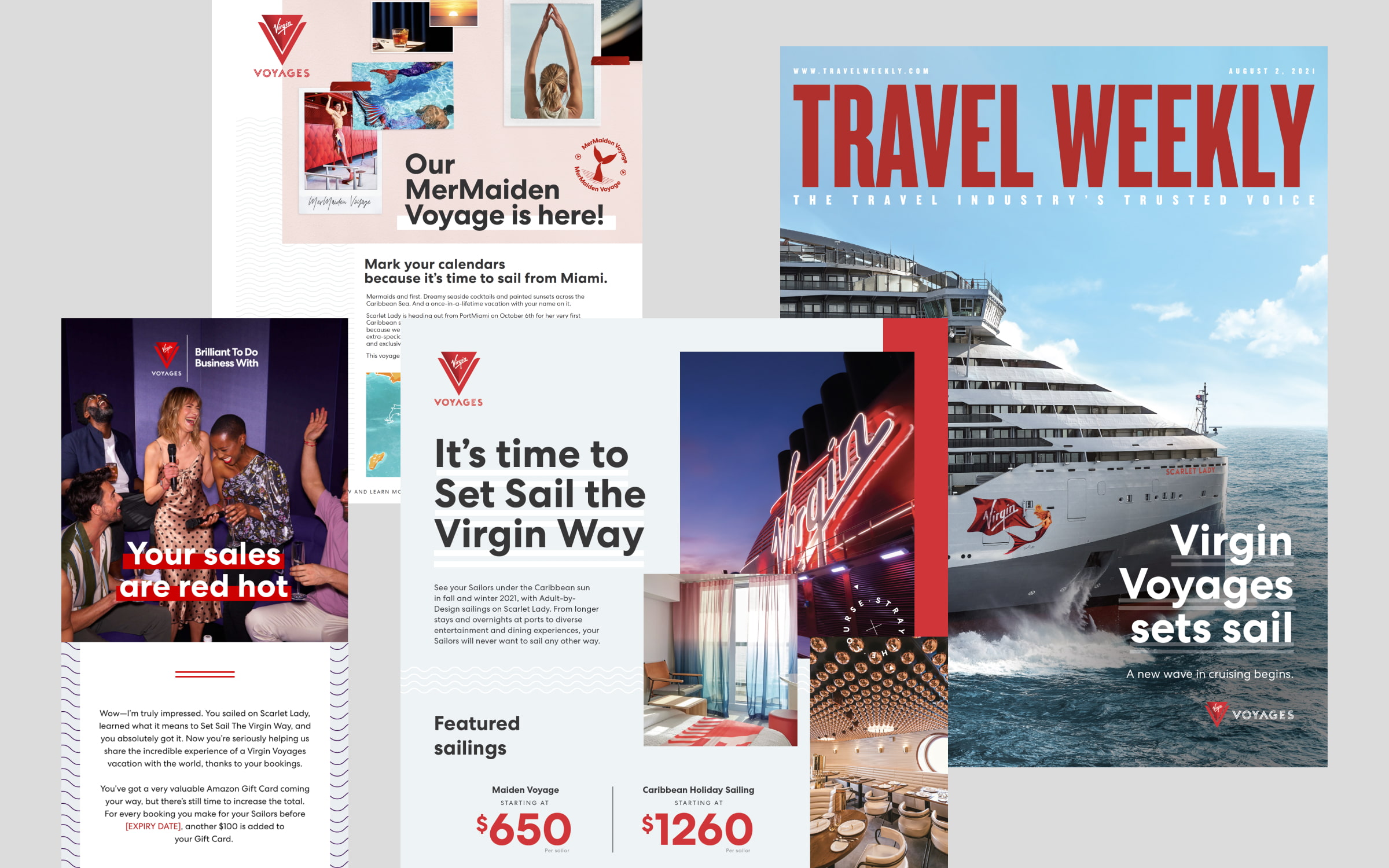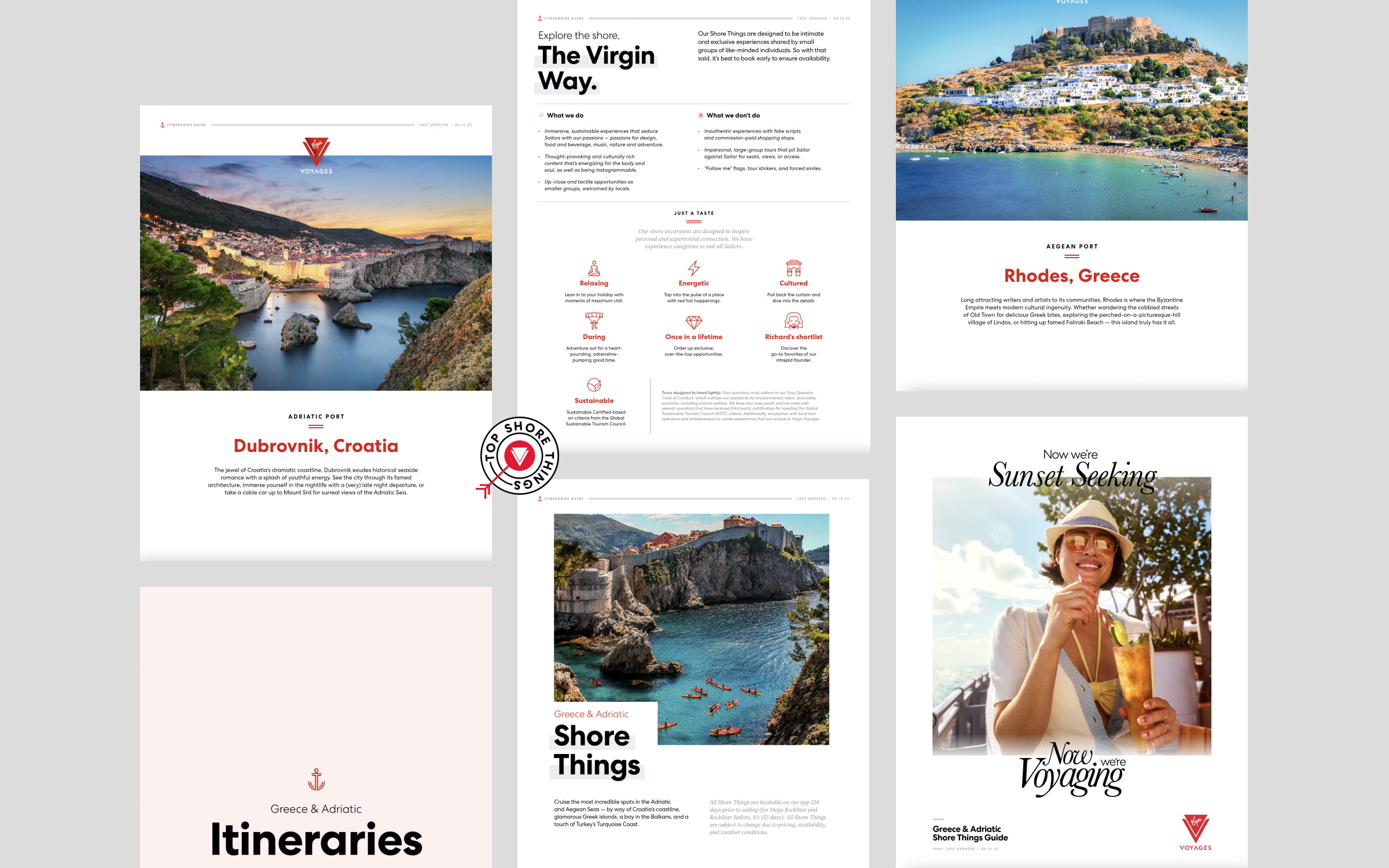 Since commencing our collaboration with Virgin Voyages, we have created various app content, emails, web ads, and print materials. By adhering to established guidelines, we have successfully maintained consistency across all assets.